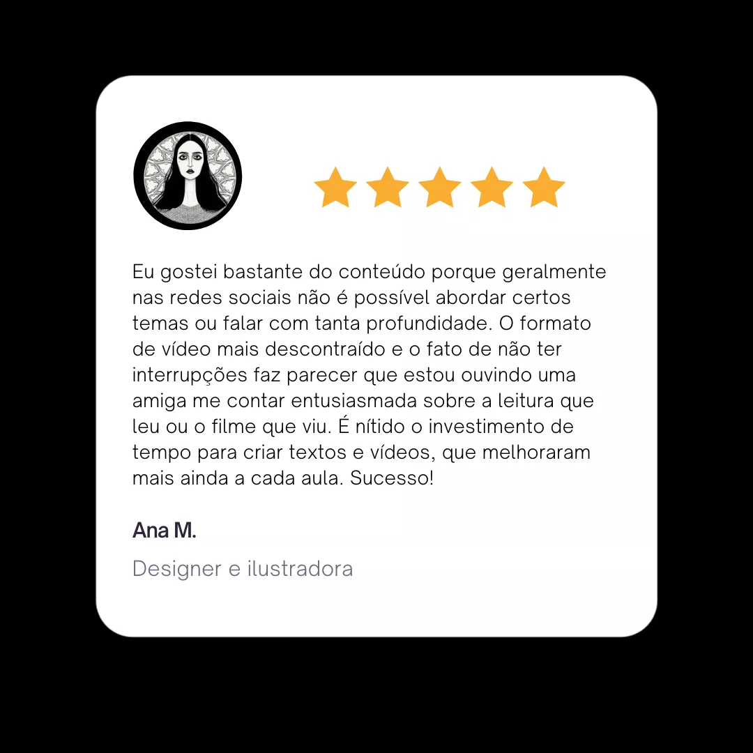 Assinando agora, você terá acesso a aulas sobre literatura, cinema e cultura. Se, em 7 dias acompanhando as aulas você não gostar, devolvemos seu dinheiro de forma simples e segura.